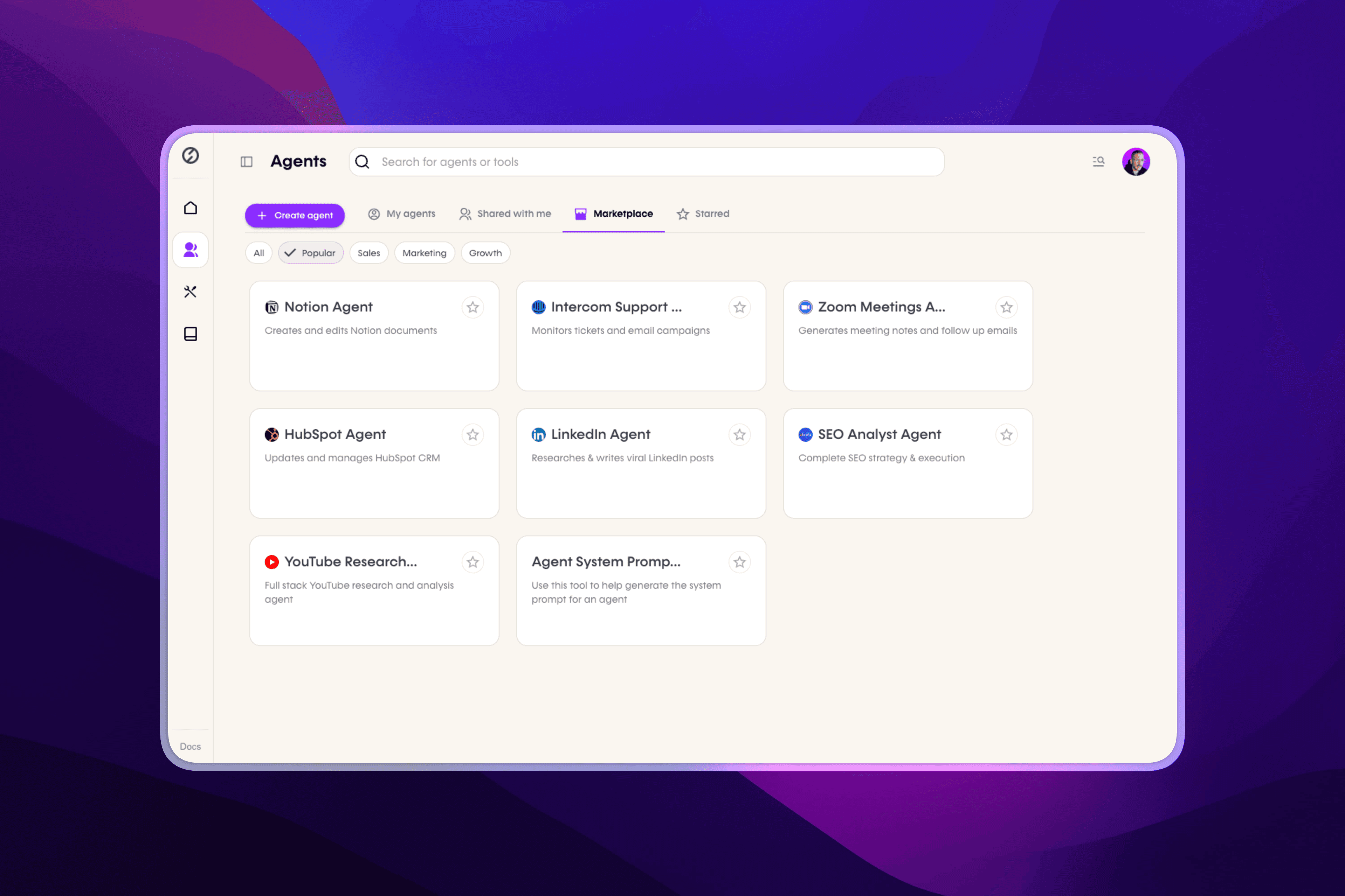 Add custom tools, sub-agents, and skills with no-code builders or discover them in the marketplace